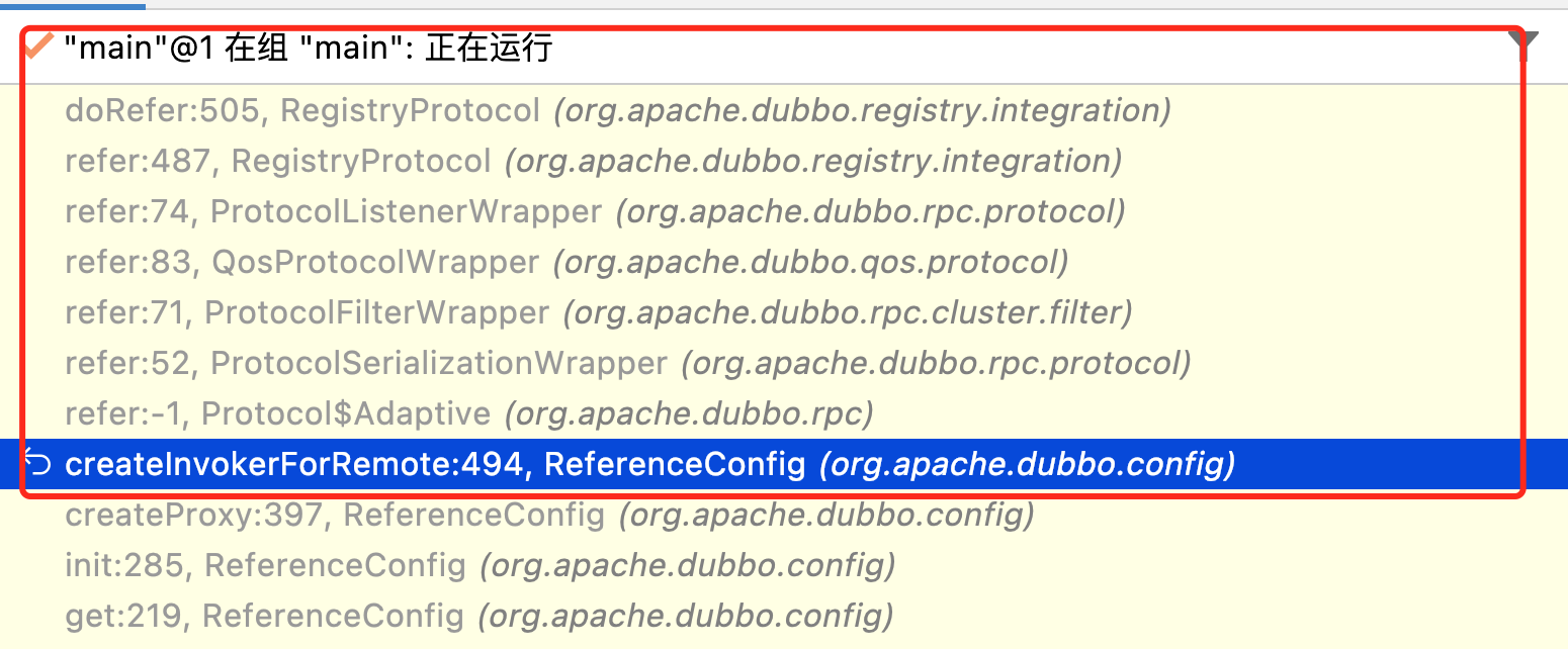 这里我们不再详细说这个引用链的具体过程直接定位到RegistryProtocol中创建Invoker类型的地方。 先来看RegistryProtocol类型的refer方法,如下代码所示: